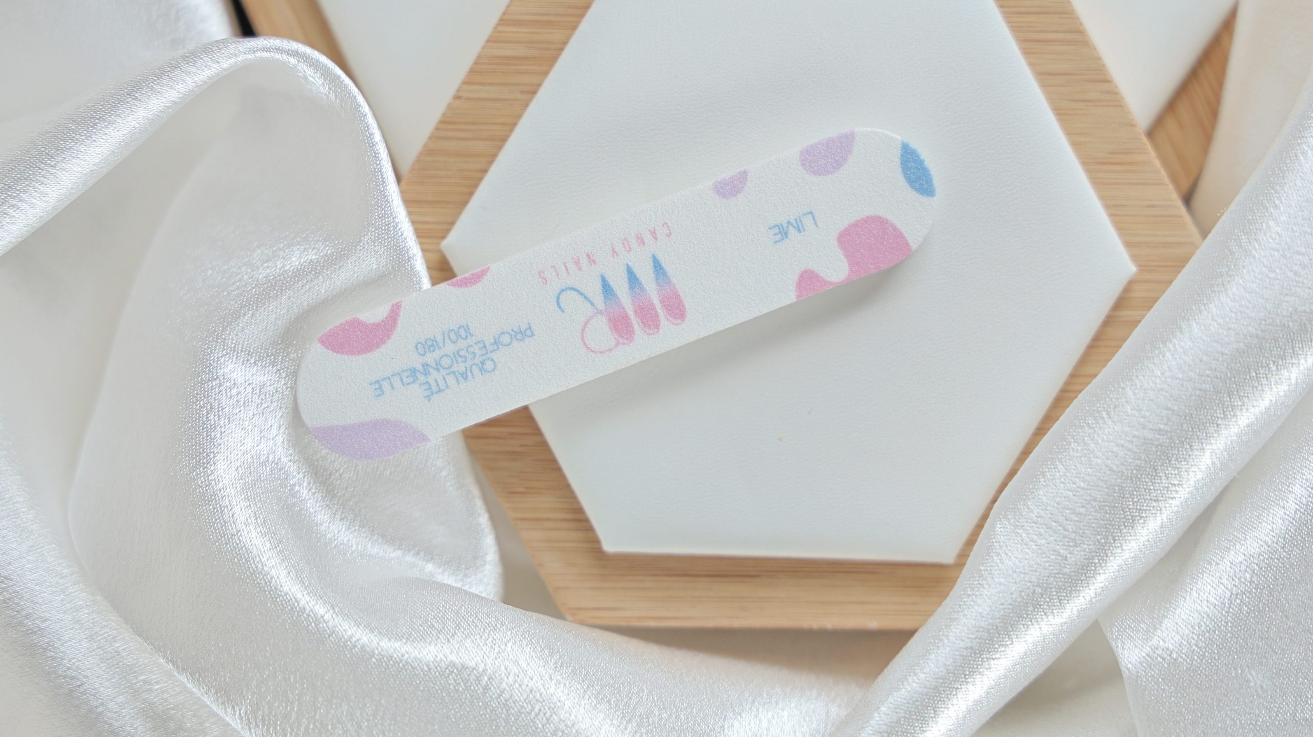 Double grain 100/180 : idéal pour travailler aussi bien sur les faux ongles que pour mettre en forme l’ongle naturel.
